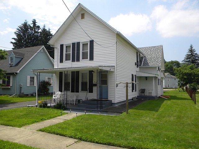 Remodeled kitchen and baths; newer roof; newer vinyl replacement windows; newer natural gas furnace; off street parking with access to detached 2-car garage off Ann St (newer garage roof). Newer hardwood flooring; gas fireplace in den; very good condition throughout. 3 BR with baths on each level. Enclosed rear porch; covered walkway between garage and home. Efficient and economical home!