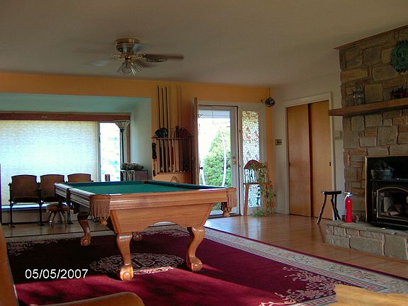 Outstanding custom ranch in beautiful condition and in a kid-friendly neighborhood in Pennington. On a 1.33 acre lot, manicured blueberry bushes, raspberry, grapes, blackberry, gooseberry and apple. There are many specimen trees, and a front yard low maintenance perennial garden. Pennington address with the excellent Hopewell Valley school system. Upgraded electric with 200 amp service. Very large living room with wall sconces and an energy-efficient wood stove inserted into the stone fireplace (which is the same stone the house's exterior is made of). Besides the living room wood stove (which can also heat the whole home) there is an energy-efficient natural gas boiler which supplies baseboard heat, and has 2 zones, each with a clock thermostat. Summer comfort is provided by a 3-ton central air conditioner. Ceiling fans thru-out. The attic floor has been overlaid with extra fiberglass insulation. REAL red oak hardwood floors everywhere, except the bathrooms (heavy ceramic tile) and kitchen (brick-pattern vinyl). Rectangular family room with arched doorways. Large master bedroom with half-bath, 2nd and 3rd bedrooms have large (wall size), custom built solid oak armoires, recently re-finished. PLENTY of closets located throughout the house. Real maple kitchen cabinets, recently refinished, stainless appliances and designer Corian style counters. All appliances are gas (heat, stovetop, water heater). Thermador wall oven is electric. Newer storm doors, and almost all windows have been replaced with energy-efficient tilt-in windows, appointed with designer bottom up/ top down blinds. The house has an atypically large amount of glass for its period. Whole house basement woodstove can be used as supplemental whole-house heat, or just to heat the basement. Full basement with ample overhead florescent light fixtures, was used as a furniture shop. Brand new washer, Maytag natural gas dryer, dehumidifier, a ref./freezer in both the basement and kitchen.