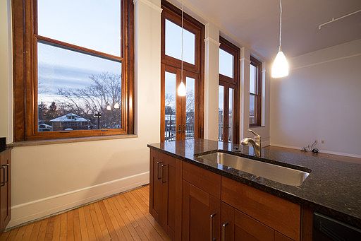 Bright & Beautiful Two Bedroom Loft with French Doors and Stainless Appliances! * Owner is looking for a non-smoker with no pets! - Large 2BR loft apartment in converted turn-of-the-century school house! - Approx 1340 sq. ft. - HVAC (central air and heating!) - 2 Lot Spaces included in rent! - Stacked washer and dryer in unit. - Stunning open faced kitchen and island with solid surface counter tops, Ikea cabinets, stainless steel GE appliances -- including a built-in microwave & dishwasher! - Full wall of windows & two double French doors lead to a private balcony. - TONS of natural light floods the main living area! - Original features include woodwork, a coat closet, and chalkboard! - 2BRs each approx. 200 sq. ft. with full closets, 2 large windows, and private bathrooms! - Bathrooms are both ceramic tile with full shower tubs! - Option to upgrade to covered car-port parking.