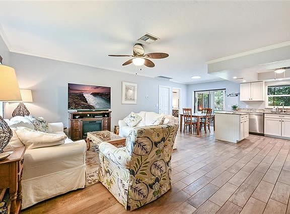 Don't miss this opportunity to own a single-family home North Naples -Willoughby Acres with a southern exposure & No HOA Fees. This tastefully renovated home is a must-see! From plank tile floors throughout living areas, crown molding to the New Gourmet kitchen with center island, granite counters, SS appliances is a Chefs Dream! Updated bathrooms, impact-resistant windows, New front door, New HVAC, hot water heater, New garage door, gutters, New widened driveway and so much more. Too many updates to list! The home is built on a wide and deep lot that boasts screened lanai and a large brick paver patio - plenty of room for a pool. The Location is absolutely perfect to all that Naples has to offer - Minutes to Sandy beaches, awesome schools. dinning, shopping - Minutes to the famous "Seed-to-Table" (shopping and dining!) and I-75. You are going to love this home! See this one first before it is SOLD!