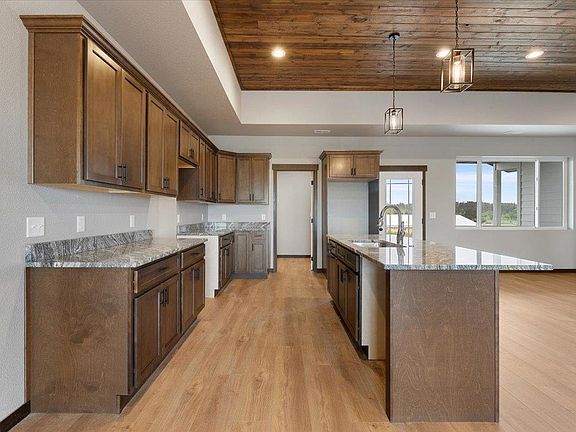 Listed by Sarah Peterka Keller Williams Realty-Black Hills Spearfish 605-661-2802. Introducing your dream home! This meticulously crafted one-level sanctuary offers 3 beds, 2 baths, and a versatile office space. Enter into a spacious open floor plan boasting a kitchen with quality cabinetry, granite countertops, center island, gas and electric range hookups and a large walk-in pantry. The living room features an electric fireplace, large view windows, and a charming 12' tray ceiling accented with shiplap. Retreat to the luxurious primary bedroom with a custom-tiled walk-in shower, double sinks and walk-in closet. A mudroom connects to the laundry room for added convenience. Enjoy stunning views from the large covered patios in both the front and back. Luxury vinyl plank flooring will be throughout the home making cleaning easy. All finishes have been selected. With completion estimated by April 30th, 2024, your perfect home awaits!