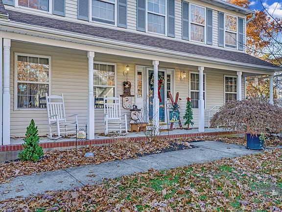 Country Woods- Herbertsville Section of Brick Classic Colonial Home. This expansive over two thousand square foot home offers 4 bedrooms, 2.5 baths, 2 car garage, and full finished basement (heated and air conditioned) with bar. Upgrades include air conditioning July 2017, water heater approx. 3 years, wash/dryer approx. 2 years, and both garage doors June 2017. 1 YR Home Warranty included! Two story foyer entrance welcomes you to your new home. The first level offers, formal dining room, living room with wood burning fireplace, family room, and newer kitchen. Newer open kitchen presents beautifully with antique white cabinets, granite countertops, center island, and newer stainless-steel appliances. Second level gives 4 generously sized bedrooms.