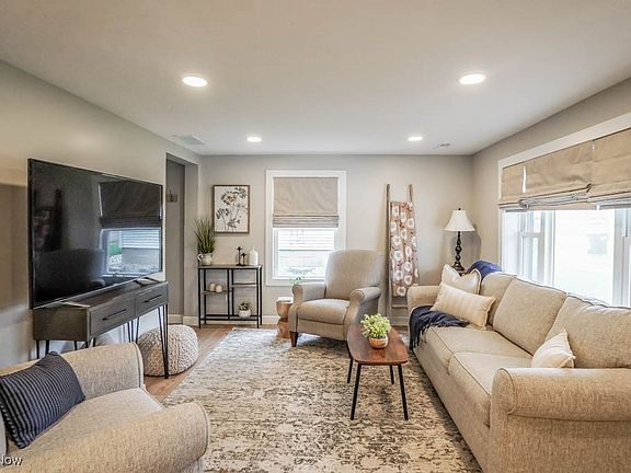This fully remodeled bungalow in Perry is absolutely darling and one you’ll be proud to call home. Step inside to an open concept layout that combines the living room and eat-in kitchen, where new custom cabinetry with soft-close doors & drawers, quartz countertops, and stainless steel appliances create a fresh, inviting space. From the attached garage, a mudroom entry provides a practical transition into the home and doubles as a laundry area. The main floor bedroom features private access to a beautifully updated full bath with a quartz top vanity with soft-close doors & drawers, and corner shower. Upstairs, the spacious second bedroom impresses with its high ceiling and comfortable layout. Outdoor living is just as enjoyable, whether you’re starting the day on the front porch or relaxing on the back patio overlooking the private fenced backyard. With a brand new roof, siding, gutters, driveway, furnace, A/C, and hot water tank, every detail has been thoughtfully completed, offering a move in ready home you’ll love. Call to see it in person today!