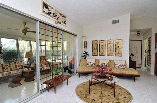 VACATION RENTAL ONLY! PRICES VARY BASED ON LENGTH OF STAY AND TIME OF YEAR! SHORT STAYS ALSO AVAILABLE! A wonderful mid-century modern cottage lovingly built by a master craftsman who turned down work from Frank Lloyd Wright himself! Most of the beautiful trees on the property, including Washingtonian Palms that reach soaring levels, were planted from seed in the 1950s. The current owners spent happy family vacations here enjoying everything wonderful the Island has to offer. Located in a quiet residential neighborhood, you're only a 5-minute walk from either the Gulf beaches or the Historic Anna Maria City Pier. The shops, restaurants, museums, theater, and galleries of Pine Avenue are just steps away, or you can easily hop on the free Island Trolley when you're ready to travel further afield. Inside you'll enjoy Asian-inspired decor, polished terrazzo floors, an open floor plan, a large flat-screen t.v, and comfortable seating for games and family gatherings. A gas grill and arbor-covered patio will invite you outdoors to enjoy the tropical landscaping. If you manage to plan your visit for mid-to late summer, pick your own mangos off a tree renowned for the excellence of its fruit! A laundry room and extra half-bath provide all the other conveniences you'd want for a comfortable, relaxing vacation, and at an excellent price! Sleeps 4 in two queen beds. Ask about discounts for stays of one month or more!