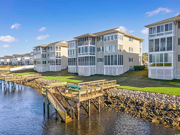 Enjoy direct views of the intercostal waterway from this nicely updated and fully furnished 1st floor 2 bedroom 2 bath condo in the heart of North Myrtle Beach! Enjoy beautiful sunsets overlooking the intercostal waterway from the spacious screened porch featuring EZ-Breeze windows and ceiling fan. Beautiful luxury vinyl plank flooring flows throughout all rooms of the condo. Custom window treatment moldings adorn all the windows and sliding door openings. Beautiful modern furniture and beach themed decor compliment the stunning waterway views of this condo. The updated kitchen features quartz countertops, new stainless steel appliances and modern fixtures. The master bedroom has its own sliding glass door leading out to the screened porch as well as a ceiling fan and a walk in closet. The master bath features a walk in shower, framed mirror and sink with quartz countertop. The guest bath also features quartz countertops and updated fixtures. The HVAC system was replaced in 2022! Located in the desirable Waterway Landing community of North Myrtle Beach, residents can enjoy access to two outdoor pools, hot tub, waterfront piers w/picnic tables and convenient proximity to local amenities. Don't miss the chance to own this exquisite waterfront retreat – schedule a showing today before it's gone!