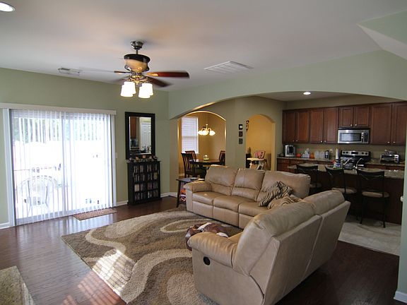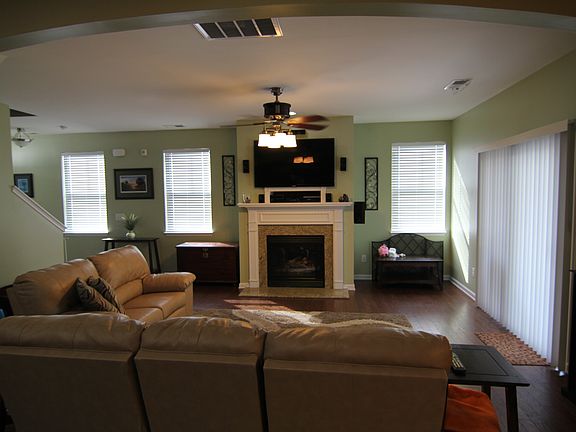 Welcome to this beautifully maintained home in Sanctuary Cove. The first thing you will notice is the ''elbow room'' you have between the two neighbors because of the way the home is placed on the lot. Walking in, you'll see the hardwoods thats flow from the foyer into the living area. The living area features a fireplace, with granite and wood surround, is open to the kitchen and the dining room; that is currently being used as a home office. The kitchen features tall upgraded cabinets, large island, stainless appliances, backsplash and granite countertops. This floorplan is perfect for entertaining, especially when you add in the covered back patio. The backyard is privacy fenced and backs up to community green space. Upstairs you have the 3 bedrooms and 2 full baths. The wonderful part is the gallery area, with built in bookshelves, that offers an additional flex space. Make this a office area, lounging area, additional bedroom, etc etc etc.... The full laundry room is spacious and gives you additional storage options. The 2 guest rooms share a "jack and jill" bath. Each guest bedroom has their own vanity area. The large master bedroom is wonderfully designed and will accommodate many large pieces of furniture. The tray ceiling with heavy trim, finishes off the designer look. The ensuite has ceramic tiled flooring, garden tub, separate tiled shower, tall cabinet with dual vanities and linen closet. The closet has ample room and could easily be expanded with my shelving to allow twice the clothing storage. Enjoy the many amenities that Cane Bay offers, from the shopping and dining, the YMCA, the miles of walking trails, community pool, green spaces and acres of ponds.