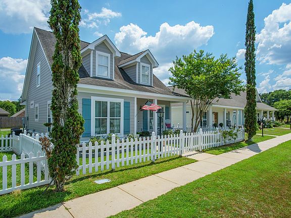 Discover this charming cottage in The Legacy, blending simplicity with sophistication. This low-maintenance home greets you with a fresh coat of paint and a welcoming white picket fence. Inside, rustic brick floors meet a modern, open island kitchen equipped with new appliances. The primary suite is a tranquil retreat, featuring his and her vanities plus a separate tub and shower. With the perfect blend of cottage charm and modern conveniences, this home isn't just a house—it's a lifestyle statement.