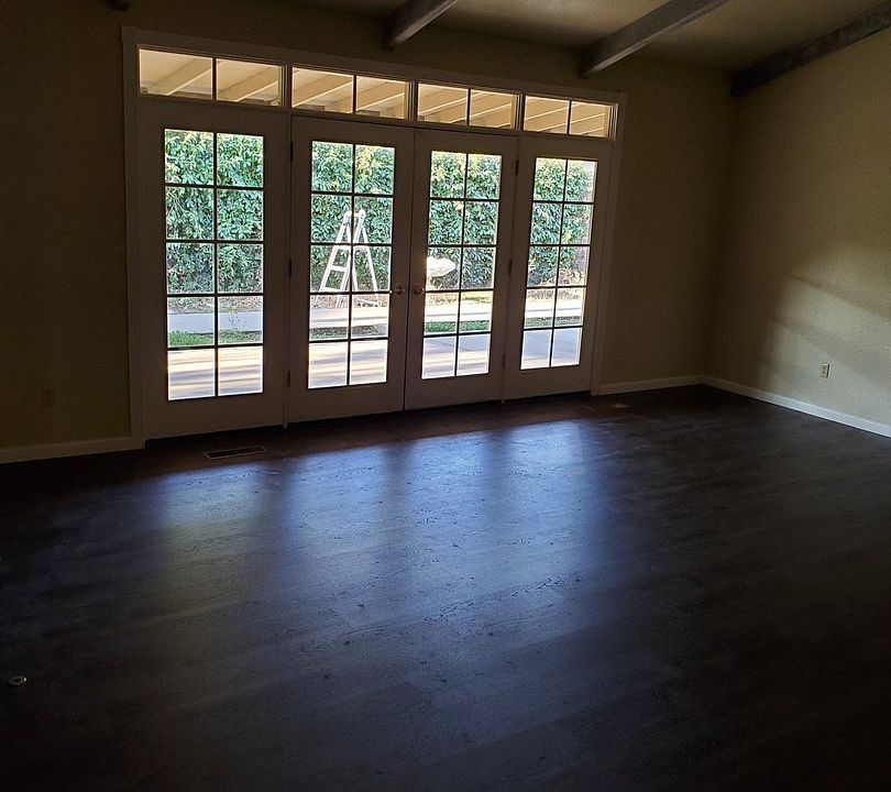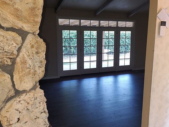Discover this exceptional Modesto home featuring 3 bedrooms and 2.5 bathrooms, complete with a 2-car garage including two remote openers. The interior is designed for comfort and style with LVP wood flooring and tile throughout most rooms, accented by contemporary two-tone paint. The living room boasts a dramatic rock wall surrounding a gas fireplace, vaulted ceilings, and elegant French doors. A second set of French doors opens to the formal dining room, which features a built-in china cabinet and additional storage.