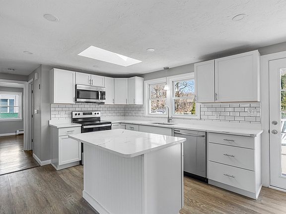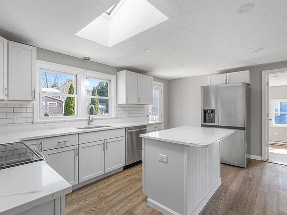 Beautiful and Updated 3 Bedroom, 2 Full Bath ranch in fantastic location! Oversized Living room with Hardwood Flooring and Sun splashed Open Floorplan Chef's kitchen with Custom Cabinetry, Center Island, Quartz Counters, tile backsplash recessed lighting and stainless appliances. Primary suite with it's own full bath with custom tile shower and separate entry gives floorplan flexibility. Maintenance Free Vinyl Siding and Composite Deck overlooks the 8,500 sq ft lot. Too much to list. Schedule your showing today!