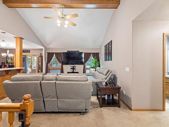 You don't want to miss this very nice 5-bedroom ranch home! Nestled in a cul-de-sac, yet so close to shopping, dining, and interstate access. This home has everything you need! The main floor living area features a cathedral ceiling, open kitchen and dining area, beautiful hard wood cabinets and flooring! The walk out basement is finished with a unique space-saving bar, fireplace, 2 bedrooms, a full bath, and storage area. Back yard is an oasis with a very nice, covered deck, a beautiful, landscaped patio, firepit, and large deck with pool! A