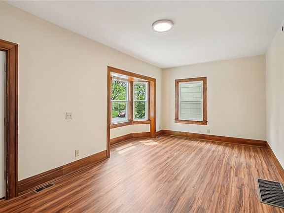 Grand Foyer welcomes you into the home, leading to a sprawling living room featuring exquisite original woodworking, a decorative fireplace, and access to a charming city front porch—perfect for relaxing all summer long. The heart of the home is a spacious, fully updated eat-in kitchen with abundant storage, complemented by a generous formal dining room ideal for hosting memorable meals with family and friends. The main bedroom features a walk-in closet, while one of the additional bedrooms boasts a rare enclosed balcony—a cozy retreat or creative nook. Enjoy peace of mind with remodeled full bath and powder room, plus brand new major systems including: Vinyl siding, Roof, Furnace, Water heater, Electrical & plumbing. Exterior features include a detached garage, walk-out basement, and new asphalt driveway (to be installed). This turnkey property offers the perfect blend of comfort, style, and security, all made possible through grant funding assistance. Don't miss this incredible opportunity to own a fully updated home in the heart of the city!