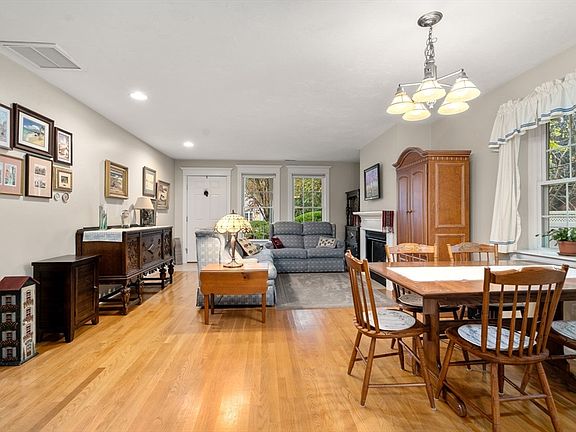 Fabulous bright end-unit townhouse with 3BR, 2.5 baths, and 2 car attached garage! The open floor plan includes a gas-fired fireplace in the living room, a boxed window dining area, a granite kitchen with upgraded storage options & stainless appliances with direct access to the patio. The lux first floor includes a primary bedroom with an en suite bath, jacuzzi tub, large walk-in closet, powder room, laundry, and easy access to the garage. The second floor offers two bedrooms (one with skylights!) an exercise/hobby room, and a large family room. This home boasts beautiful detailing, hardwood floors, Central AC, Central VAC, a patio, a covered porch, and a choice corner location for privacy. Spacious luxury and NO age restriction! It's a terrific opportunity for all ages, including those “right-sizing” or wanting a comfortable 1st fl primary. Close to shopping, the National Wildlife Refuge, commuting routes, and Rail Trail. Small, young complex with low fees ~ this is a treasure!