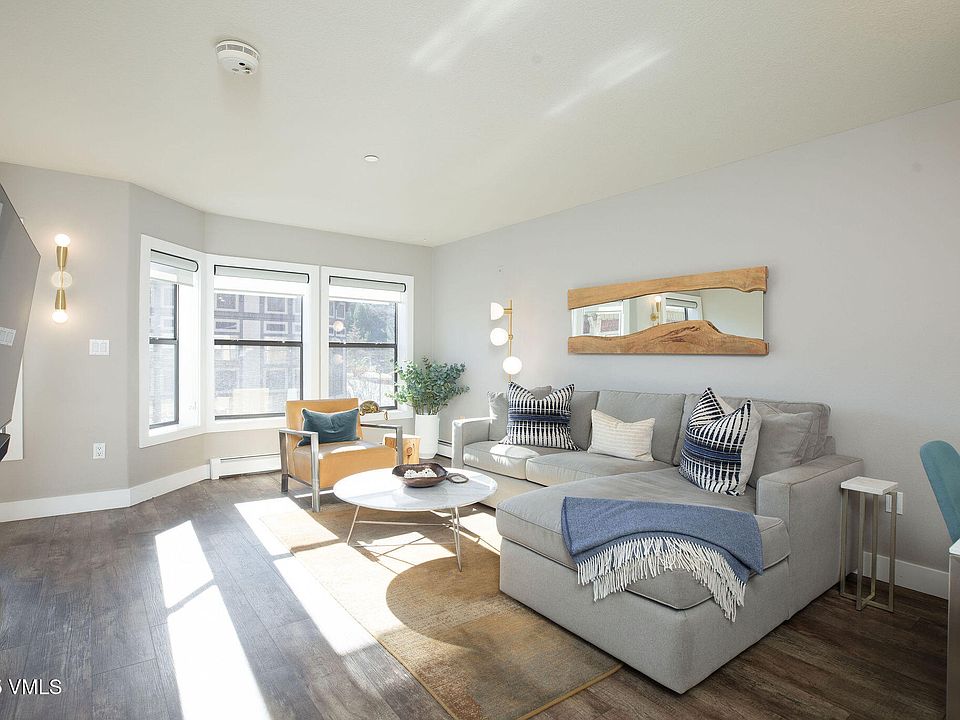 Experience modern comfort and convenience in this beautifully appointed 2-bedroom, 1.5-bath split-level condo in the coveted Riverwalk community. Views of Game Creek bowl from the primary bedroom are unique for this property. Featuring plank flooring and freshly painted walls and trim. The home features underground parking in the Riverwalk garage, along with a private storage room. Just steps from your door, you'll find a wide selection of shops, restaurants, coffeehouses, a grocery store, and a movie theater. Owners enjoy a convenient, comfortable, and carefree lifestyle in the heart of Riverwalk.