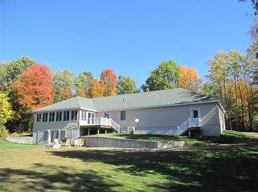 Exceptional expansive Custom Ranch tucked into a lovely clearing on a low traffic road in desirable Bernardston. This 5 room, 3 bedroom, 3 car heated garage also has a hidden wine cellar. Wonderful open floor plan graced with French doors to the rear sun porch and master suite with jet tub and walk in closet. Two additional bedrooms and another bath with jet tub and laundry are in a separate wing. The lower level offers an in-law space, media room and more. Fabulous!