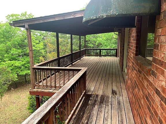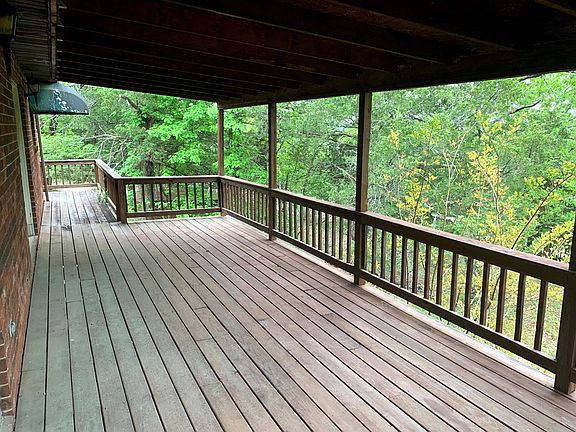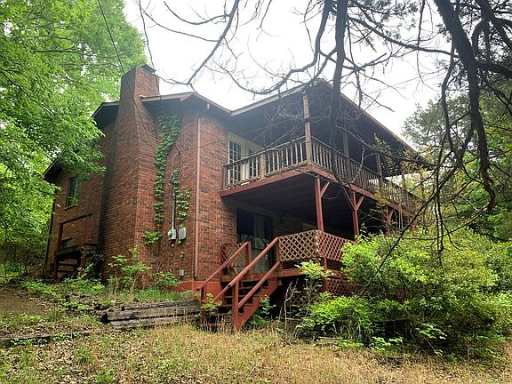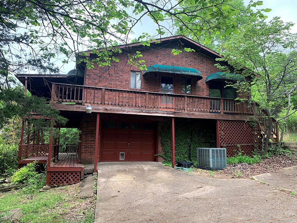 Brick home that sits in the exclusive Lookout Mountain Subdivision on 2 lots, consisting of 0.5 an acre, more or less. Seasonal views of Bull Shoals Lake. It has a circle driveway and one car garage attached to the fully finished walk out basement. There are 2 bedrooms & 1 1/2 bathrooms upstairs, as well as a covered deck that's accessible from the living room & dining area. Downstairs, you'll find an office in the den that leads to the lower deck (also covered), that could potentially be a 3rd bedroom, 2 closets for plenty of storage, another full bathroom with washer/dryer hookups & a small utility workshop/room. Loaded with charm, and with a little cleaning and updating, this would be a perfect starter home for a family!