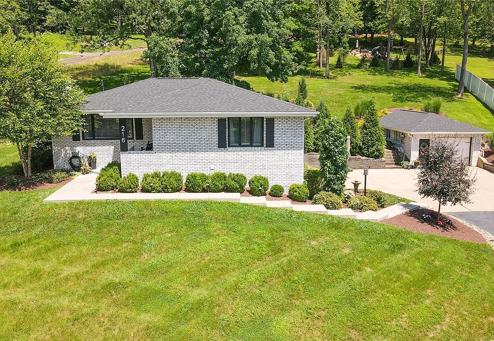 TOTALLY REDONE RANCH. First floor living at its finest! Open and Bright Floor Plan including Sun Drenched Living Room, Formal Dining Room, Gourmet Kitchen with White Cabinetry, Stainless Steel Appliances, Trendy Backsplash and Plenty of Counter Space. 3 Bedrooms and an updated Full Bath are Sure to Please. Large Finished Walk Out Lower Level with Cozy Family Room, Complete with Log burning fireplace, Convenient Office, Laundry, Full Bath and Storage Galore. There is a spacious integral garage leading out to the expansive concrete driveway. Enormous Detached oversized garage as an added bonus. Over half an acre of established Landscaping including a fenced in are perfect for fur babies. Relax and Enjoy the Private Patio and the gorgeous yard for Entertaining! This home offers the best of ranch-style convenience paired with modern finishes and plenty of room to live, work and play.