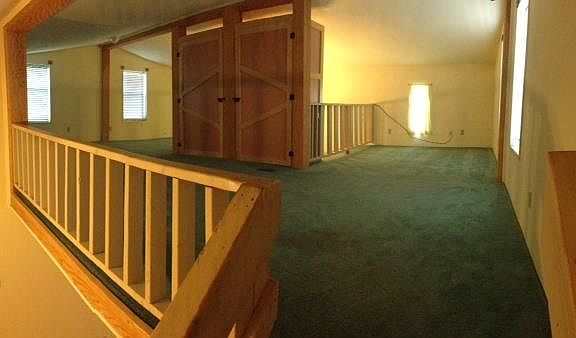 Open floor plan, upstairs 1 large bedroom. Total electric