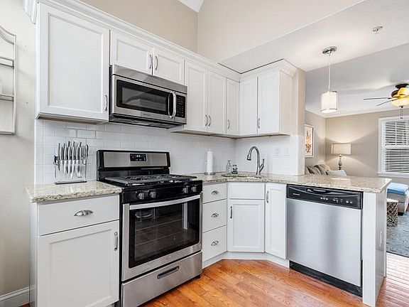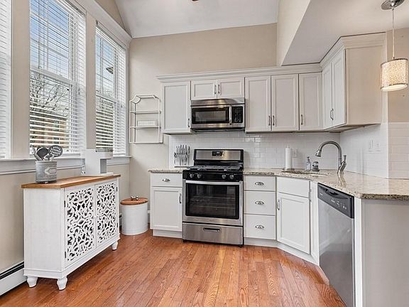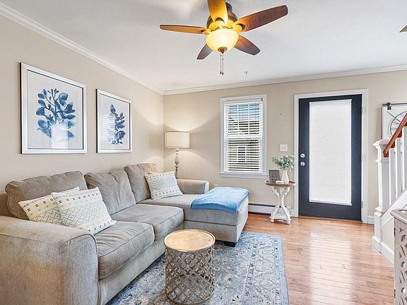 Easy, breezy, beautiful end unit town house at pet friendly Central Square Terrace Condominiums. Open floor plan with hardwood floors, cathedral ceiling & granite countertops. Eat in kitchen with new stove (2021) & SS appliances. Take in the sunshine on your balcony off the living room. Second level features bedroom with ceiling fan with good size closet and tiled bathroom with pedestal sink. Lower level has convenient in unit laundry with new Washer/Dryer (2021). Off street parking in front of garage & guest spot. 15 minutes to Nantasket Beach just in time for summer. Don't let the square footage fool you, spacious layout & turnkey ready to move right in. A great alternative to renting!