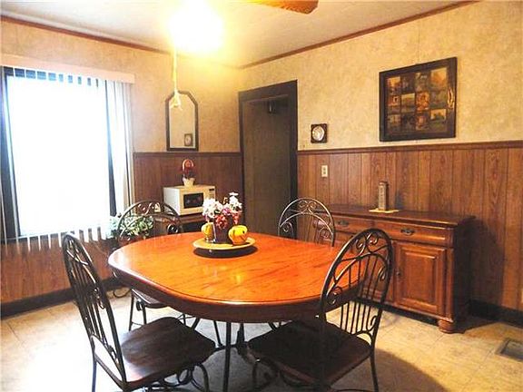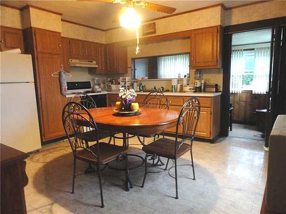 2 Story 2 BR 1.5 BA home with spacious rooms! Nice condition! Updated eat-in-kitchen with oak cabinets and neutral countertops! Kitchen is equipped with newer gas stove, refrigerator, and microwave! Heated sunroom, just off kitchen, with serving window over sink! Man-door off sunroom to driveway that can park 3-4 cars! Full unfinished walkout basement with W&D, commode, and shower stall! Vinyl windows! Covered front porch with fenced front yard! Central AC! One year HSA home warranty to buyer!