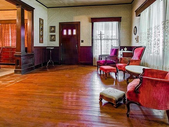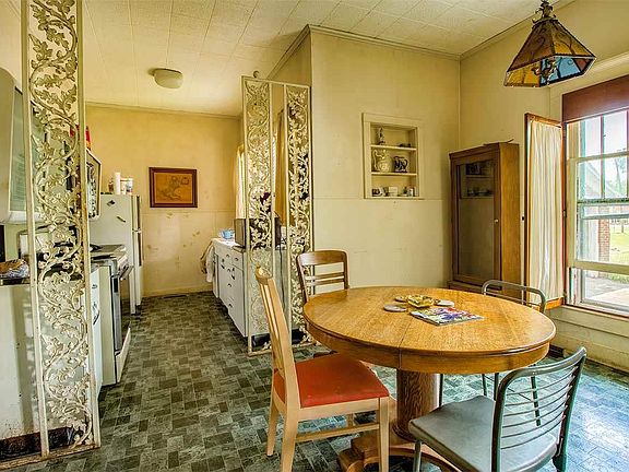 Must See Captivating home in the heart of small town America with spacious rooms & hardwood floors through most of the house. Dining room, Living room, Den/Office /family room, eat in kitchen - all are heated by Gas CH&A. The upstairs of this home has window AC unit & wall heaters. Beautiful wood work throughout with a ton of built-ins. Inviting wrap around porch for entertaining friends and family or just relaxing on a long summer days.