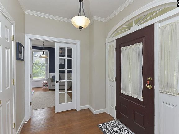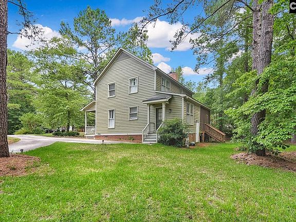 Blythewood schools, but no HOA! Williamsburg style home with rocking chair front porch on a cul de sac street. Great room with hardwoods, wood burning fireplace, french doors that open that open onto screened in porch. Formal dining room with hardwoods could serve as office. Kitchen with eat in area overlooking wooded yard. Master and 2 bedrooms up. Backyard shed has power. New HVAC installed May 2019.