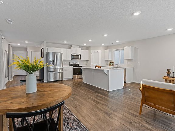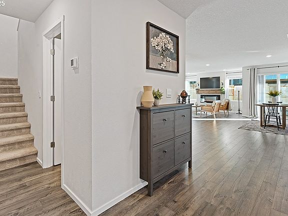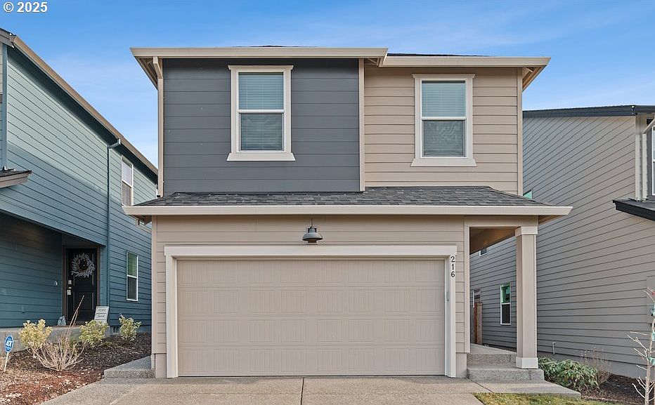 Welcome to 216 N 28th Place, a stunning two-story traditional home nestled in the heart of Ridgefield, Washington—the fastest-growing city in the state! Built in 2022, this modern residence offers 1,977 square feet of thoughtfully designed living space, featuring 4 spacious bedrooms and 2.5 pristine bathrooms.As you step inside, you'll be greeted by an open-concept main floor adorned with elegant flooring and a cozy fireplace, creating a warm and inviting atmosphere. The contemporary kitchen is a chef's dream, boasting sleek quartz countertops, stainless steel appliances, and a generous island perfect for meal preparation and casual dining.Upstairs, the serene primary suite provides a private retreat, complete with a luxurious en-suite bathroom and a custom closet organizer in the walk-in for optimal storage. Three additional bedrooms offer flexibility for family, guests, or a home office.Designed for comfort and convenience, this home features custom cord-free blinds throughout, smart home technology for enhanced security and efficiency, and central air conditioning to keep you comfortable year-round.Step outside to the low-maintenance backyard with artificial grass and a drainage system, perfect for year-round enjoyment. The expanded concrete patio and pathways surrounding the house provide ample space for outdoor relaxation and entertainment.Beyond this beautiful home, Ridgefield is thriving with exciting new amenities, including a brand-new Costco, In-N-Out, and multiple recreation facilities. Residents also enjoy access to the Ridgefield National Wildlife Refuge, a haven for nature lovers and outdoor enthusiasts. The city boasts top-rated schools, a charming downtown with scenic walking paths, and a strong sense of community.Don't miss the opportunity to own this exceptional property in one of Washington's most desirable and fastest-growing areas. Schedule your private tour today!