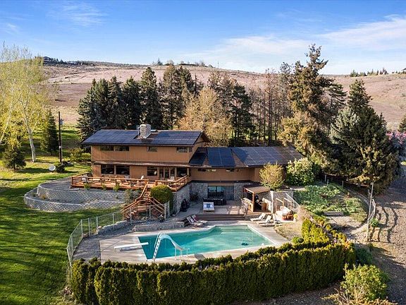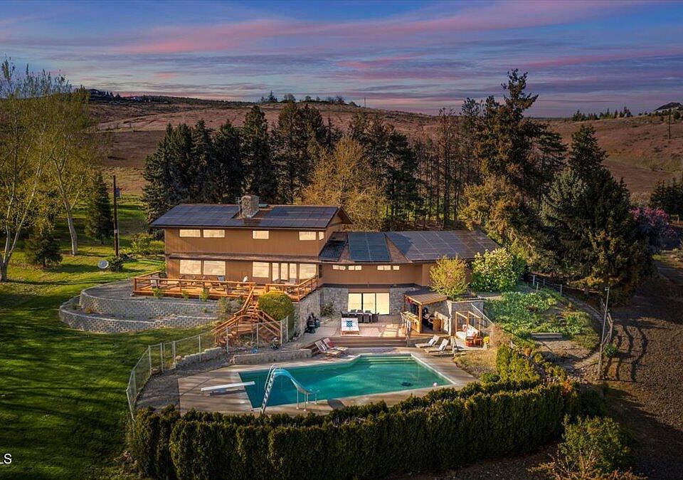 New Price! Perched at the top of N 93rd Avenue in a gated community with many modern amenities, this 5,000+ sqft home has much to offer. With 5 bedrooms and 4 bathrooms, this greeting home is an entertainer's dream! Tall ceilings and a grand staircase in the entryway. Large windows in the living room, rec room, and kitchen provide sweeping views of the valley. The dining room is large enough for gatherings and bringing extra chairs to the table. The bedroom on the main floor can also be used as an office. Enjoy evenings outside on the large main-floor deck, and have views of the pool while enjoying day-long sunshine. The upper level provides privacy to the living quarters and a huge WIC off of the primary suite. Other bedrooms provide built-in shelving, double closets, and another bathroom to share. The daylight basement lets in natural light for the area currently used as an art studio and a movie lounge. Notice the half bath and his&hers changing rooms with easy access to the pool. You'll also find a home gym with a Murphy bed and an extra large storage room downstairs. The back patio brings the wow-factor with a built-in bar and plenty of space for patio tables and furniture around it. This home is energy efficient with solar panels that make the power bill very low. If you have an electric car, there is an outlet in the garage powered for electric vehicle charging. This home is secured by the protection of the community gate and an in-home alarm system. Recent updates include creating an open-concept space on the main level in the dining and living spaces, new kitchen countertops, new floors in multiple living areas, solar panels, two new water heaters, a new furnace for the main floor, updated electrical services, a 7 year-old roof, a newer basketball court in the driveway, and much more. Call your Realtor for a tour today.