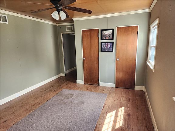 - Features: Floor Covering: Laminate, Wall Covering: None