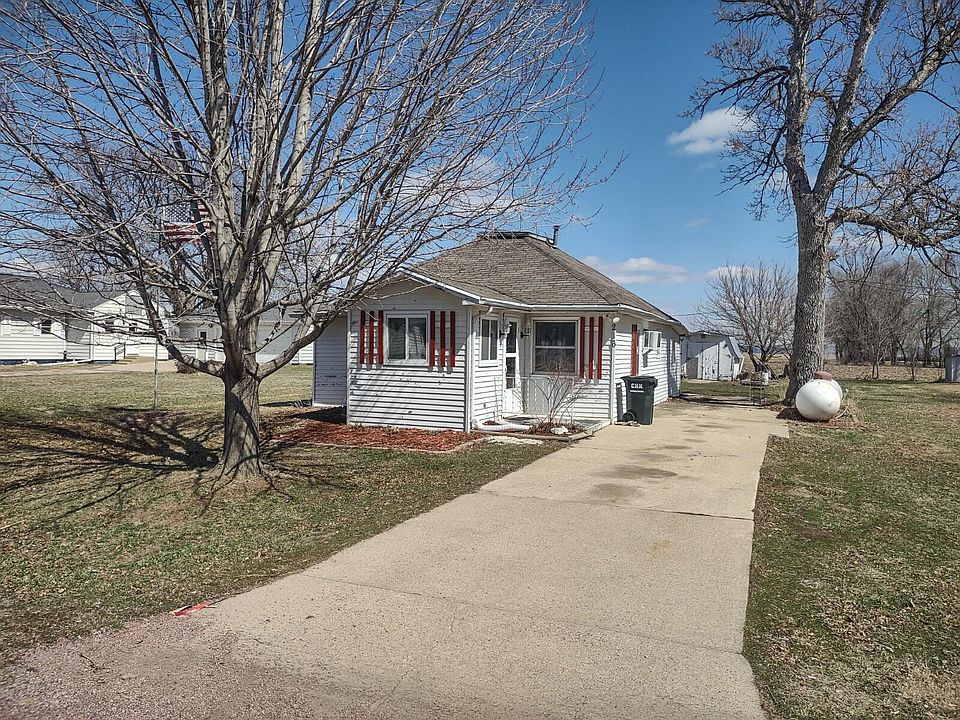 Cozy 2 BR Ranch in quiet small town. Big kitchen, big living room, nice enclosed entry porch. Refrigerator, stove, and microwave, almost new gas (propane) water heater. Storage shed, nice view of the Loess Hills. WAY cheaper than rent!