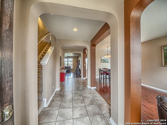 Located in the beautiful town of Cibolo on a greenbelt is a gorgeous 5 bedroom home with a guest suite down and full bath. The exclusive master suite is huge to include a large walk-in-closet with his/her vanity. The game room is upstairs with three additional bedrooms & walk in closets with a window. One of the bedrooms could be used as an office. The kitchen is a must see to include a huge walk-in-pantry,cook top stove & microwave & double oven. Located near major shopping center and Randolph AFB