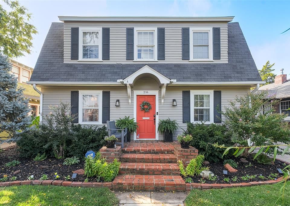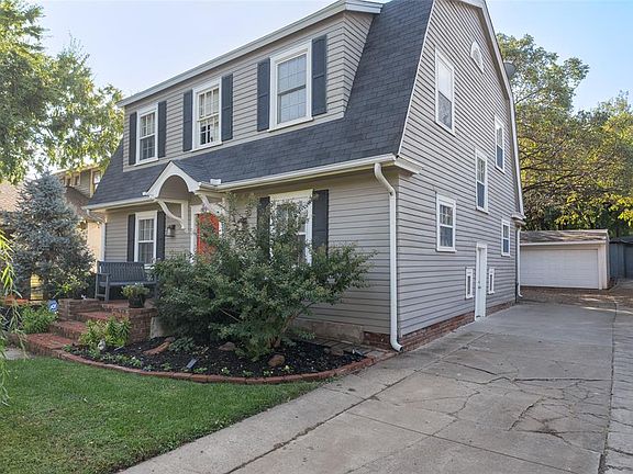 This beautifully preserved Dutch Colonial home in the heart of Historic Mesta Park blends architectural charm with modern comfort. The inviting living area showcases original hardwood floors, abundant natural light, and a handsome fireplace framed by built-ins—creating a warm and timeless atmosphere. The adjoining dining room accommodates both casual meals and formal gatherings, flowing seamlessly into the updated kitchen with granite countertops, stainless steel appliances, and classic cabinetry that unites vintage character with modern functionality. A flexible study or sunroom connects to the backyard through French doors, offering the perfect space for a home office, creative studio, or reading retreat. The main level also includes a spacious laundry room with custom cabinetry, bench seating, and a convenient half bath. Upstairs, the serene primary suite provides a peaceful retreat with soft tones, crown molding, and a sliding barn door leading to a walk-in closet. The updated ensuite bath features a walk-in shower with contemporary tile and modern fixtures. Two additional bedrooms each enjoy easy access to a separate full hall bath featuring dual sinks, marble-style tile, and updated finishes. Outdoors, enjoy year-round living beneath the expansive wood-beam pergola with string lighting, ceiling fans, and a cozy outdoor fireplace. Mature trees, raised garden beds, and a hammock area add to the relaxing ambiance. The two-car detached garage, sold as-is, offers ample storage. An unfinished basement provides additional storage. Located just blocks from Perle Mesta Park and the Uptown 23rd dining and entertainment district, this home captures the essence of Oklahoma City’s historic living—timeless architecture, modern updates, and unbeatable walkability.
