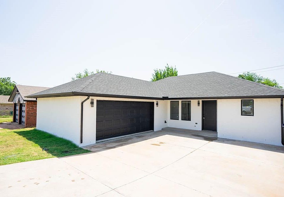 Modern new construction home in NW OKC w/ tons of designer touches! Easy access to downtown. The living area and kitchen have wood laminate flooring. Accent wall in entry custom light fixtures throughout. Master bedroom features large walk in closet with lots of shelving. Both bathrooms have waterfall decorative tile in tub surround and granite tops on vanities. The kitchen has subway tile and marble counter top and pantry for extra storage also a custom barndoor to separate the kitchen from living. Large back yard with stained privacy fence outdoor space offer endless possibilities!