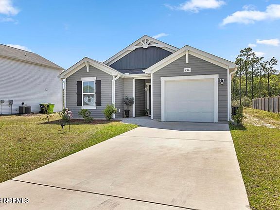 Welcome Home!!! This charming single floor coastal cottage offers 3 bedrooms/2 bathrooms and rests on a spacious lot in community of The New Home Place. As you come inside the entry way you are guided into the main living area, complete with an open kitchen and a cozy living room. At the front of the home you will also find the two guest bedrooms and a full guest bath. Then set on the backside of the home for complete privacy is the lovely master retreat, which has its own en-suite bathroom and walk in closet. The home is wonderful and the location is ideal for those looking for easy access to the beaches of Topsail Island, plus just about 30 mins to Jacksonville and 30 mins to Wilmington. Make this charmer your new home today, before it's too late!!