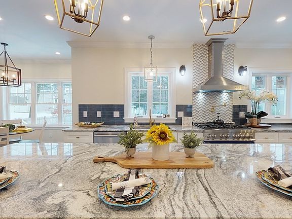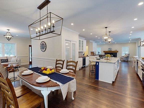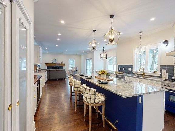 NEW CONSTRUCTION home with HEATED IN-GROUND POOL. 4 finished levels make up this nearly 4900 square foot home. From the front farmer's porch with swing you enter the spacious foyer with dark rich wood flooring that flows throughout the 1st floor. The heart of the home is the kitchen and this one is spectacular. A 10ft center island hosts a great entertaining space. Other kitchen features include 6 burner range, pot filler, stainless refrigerator, deep sink, a wine station with chiller and desk area. Also on the 1st floor are a fireplaced familyroom, living room, dining room, mud room and powder room. The 2nd floor has almost 1800 sf offering an amazing master bedroom with en-suite bath (tiled shower, soaking tub, double sink and anti-fog lighted mirrors) and your own "Glam" dressing room. Each of the 3 other bedrooms has custom closets. 3rd floor has a great room, office and bath (tiled shower) the finished basement has playroom and exercise room & full bath. Please view feature sheet