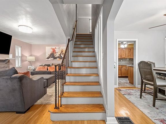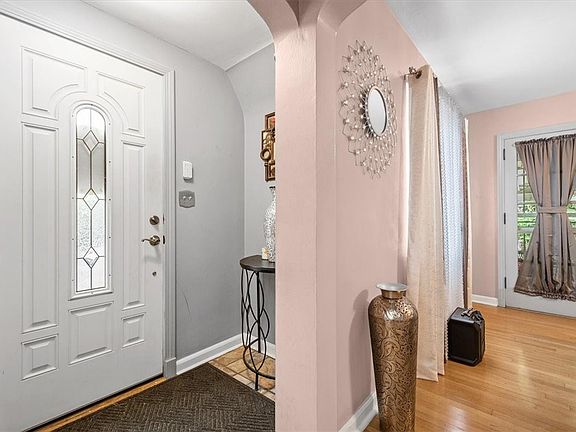 Welcome to this charming 2 story brick home on a picturesque tree-lined street. Enter & admire the stunning hardwood floors that flow throughout. Spacious LV features a decorative fireplace & large windows. Enjoy delightful meals in the light-filled formal DR w/built-in corner cabinets. Updated KT offers ample cabinetry, modern fixtures, granite countertops & stainless steel appliances. Take in the rear yard views from the kitchen window. Oversized master BD boasts ample closet space, ceiling fans & hardwood floors. 2nd BD is generously sized w/a walk-in closet. Updated full bath has a tub/shower combo w/ceramic surround, a newer vanity & stylish flooring. Full basement provides storage, laundry & 1 car integral garage. Unwind on the cozy covered porch w/awnings. The level back yard is surrounded by mature trees for shade & privacy. 2 large sheds offer plenty of outdoor storage. This lovingly maintained home is move-in ready, inviting you to experience comfort, style & tranquility.