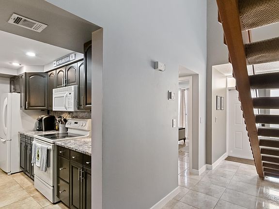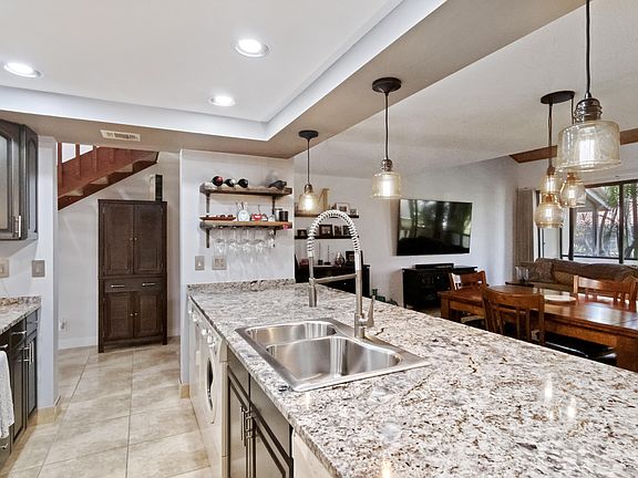 Beautiful courtyard entrance to this well maintained two story townhouse. This home offers updated kitchen with granite countertops. Newer roof in 2012, A/C replaced in 2016, with service contract. The water heater is 1 1/2 years new. 2nd bath has been update as well as the upstairs master bath. There is tile throughout the home. Large 8' sliders off of the living room to the covered patio with that is adorned with beautiful Areca Palms. The one car garage leads you to the spacious courtyard entry for entertaining. Sold partially furnished. See document tab for all exclusions. POA requires annual fee of $775.00.