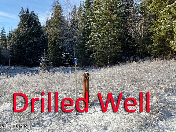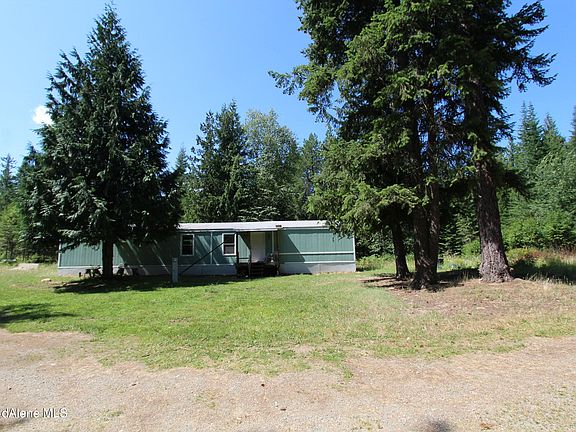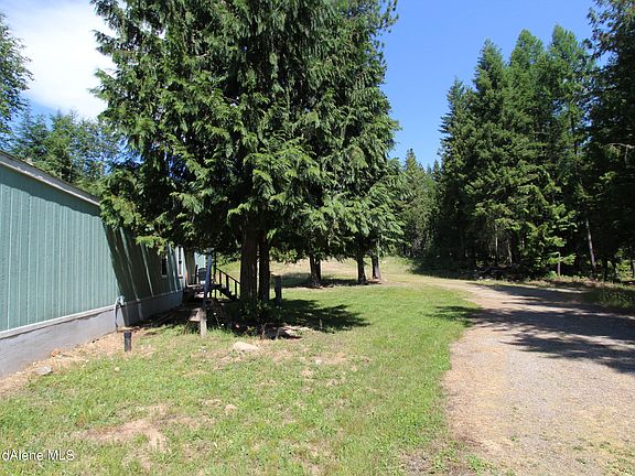 Beautifully treed 6.18 acres that offers mature evergreen trees, installed septic system, underground power to the house, a shared drilled well & pond. The property has been surveyed. The home has a nice open living room, dining room, kitchen and 3 bedrooms, 2 bathrooms & laundry room (back door has no deck, please be careful). The well is situated on this property and is shared with 3 properties (15 gallons per minute and 280 feet deep). The property offers several building sites to build your home nestled back from the road and surrounded by mature evergreen trees that have been nicely trimmed. The land is level & playful. Situated between Sandpoint and Coeur d'Alene, a ¼ of a mile off the county maintained road and with no CCR's. Financing is not possible, owner may finance