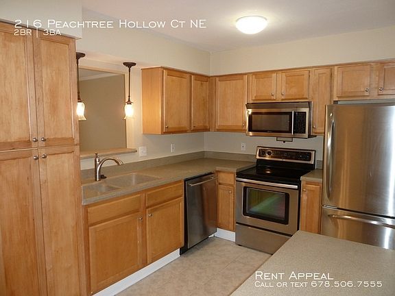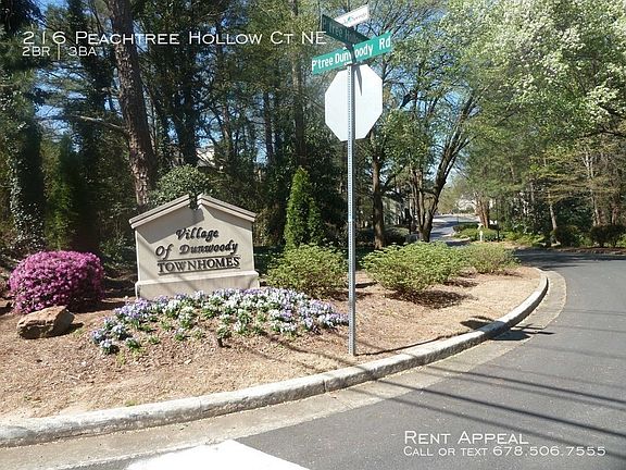 This 1557 square foot townhome home has 2 bedrooms and 2.5 bathrooms. This home is located at 216 Peachtree Hollow Ct, Sandy Springs, GA 30328.