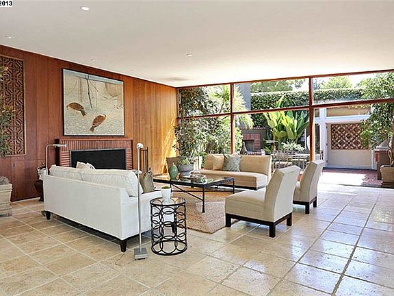 Spectacular mid-century with huge Bay views. Beautiful gardens, central atrium, new kitchen/family room. Perfect location on the Piedmont side of Montclair!