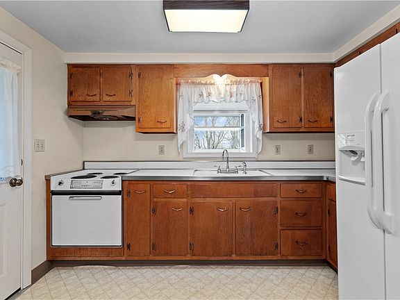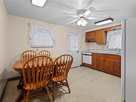 This lovely three bed, one and one-half bath ranch home is ready for its new owners! The main level consists of a living room, an eat-in kitchen, a primary bedroom with a sizable half bath, two additional guest bedrooms, and a full bath. Very clean and extraordinarily well-kept over the years. Original hardwood floors are expected under the carpet. Plaster walls and updated windows throughout. Updated furnace. The walkout basement has high ceilings and is the entire footprint of the home. New luxury vinyl plank flooring in the massive lower level game room. There is an additional room in the basement was formerly a full kitchen, and could be used as such or transformed into an office or bar area. The laundry room large and has space for storage and a work area, newer washer and dryer included! Outside is an adorable front porch with swing and a side porch perfect for grilling this summer! Located on the end of a dead-end street with little traffic, but close to shopping and schools!