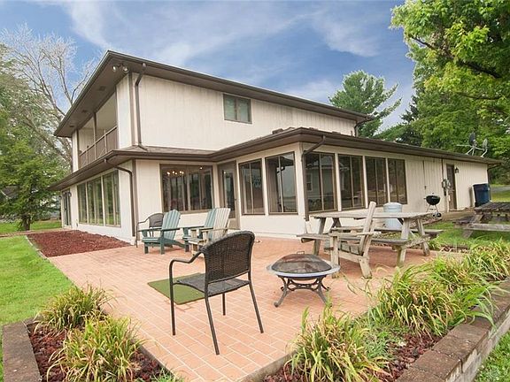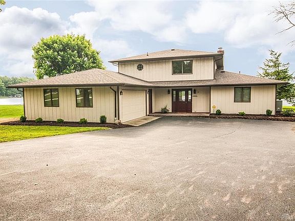 It's all about the view!! Incredible lake views from almost every room in this 4 bdrm, 3 ba 2536 SF home! Over 134 Feet of water frontage and a completely flat lot, this property is a rare find. Open Foyer w/tile floors leads to Great Room with panoramic views of the lake, wood burning fireplace & walk-out dining room. Screened-in porch & patio will enhance enjoyment of Lake. The owners suite features walk out to patio and attached bath. Upstairs 2 Bedrooms share balcony lakeside. Level yard leads to Boat dock & lift. Newer over engineered concrete seawall. Located on a quiet cul-de-sac just a short walk to the beach and lodge area. Newer heat pump, and new roof in 2013. Perfect for a family, entertaining or a peaceful get away, this is your new lake home!