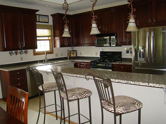 Spacious 2 bedroom, 2 full bath condo located on Evergreen Golf Course in Elkhorn. Over 1800 square feet of maintenance free living offers King sized master suite with walk-in closet, whirlpool tub and separate 5 foot shower. Living/Dining combo includes gas fireplace, 9 foot ceilings throughout. Kitchen has Cherry cabinets with under cabinet lights, granite counters, stainless steel appliances, large island and wet bar, with an abundance of storage and counter space. 4-Season Sun room/Den and Balcony with sprawling views of the 3rd hole South green. Convenient in-unit laundry and over sized 29 foot deep 2 car garage. Low maintenance fees, convenient location makes this one of the best places to live in the city with a country feel. For sale by owner, call 262-723-1066 or cell: 262-374-1038 and 414-708-4123
