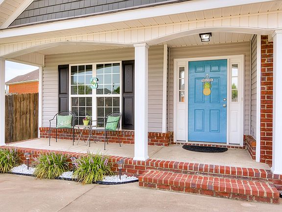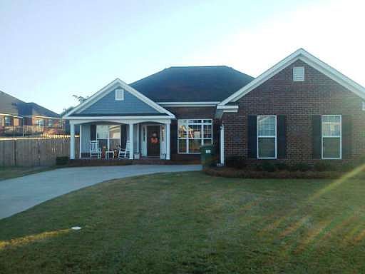 This pristine, all brick ranch is waiting for you to call it home! This home boasts extreme curb appeal with a courtyard entry garage and welcoming front porch. Walk inside and be greeted by an open floor plan, soaring ceilings, and hardwood floors in entry way and dining room. The upgraded kitchen features tile floors, stainless steel appliances and travertine tile backsplash. Relax in your master bedroom and admire the tray ceilings and large master bathroom with double vanities. This split bedroom floor plan is perfect for giving each family member their own space. Guest bedrooms and bathroom are tucked away in a hallway of their own. The large, flat, fenced-in backyard is the perfect entertainment space with a patio and deck to enjoy. Double gates entering the backyard on the side of the home are perfect for easy storage for boats and other toys. Welcome home to 216 Rainbow Falls!