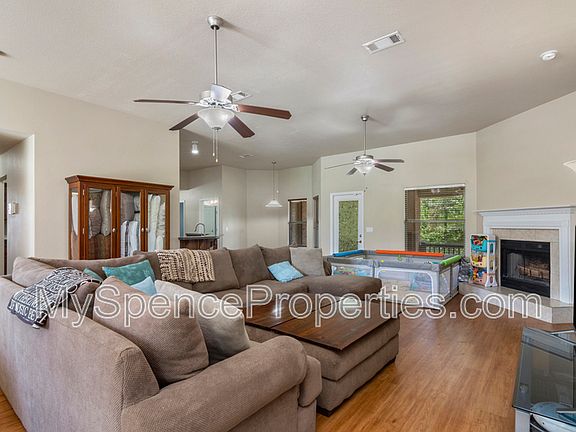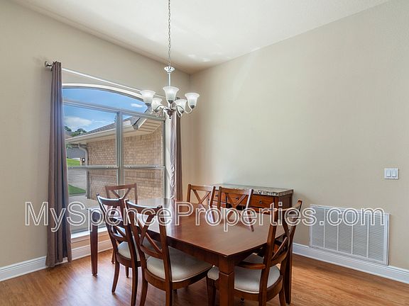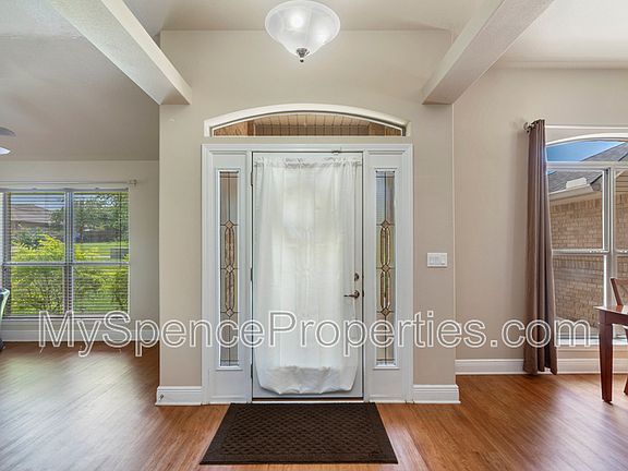 This property qualifies for Security Deposit Options! Move in without having to have the security deposit paid upfront! Contact Spence Properties for more details! Welcome to this beautifully designed home that offers space, style, and comfort in every corner! With 4 spacious bedrooms, 3 full bathrooms, and a separate office, this layout is perfect for families or anyone needing extra room to spread out. As you approach, you'll be greeted by an extended front porchperfect for relaxing or decorating seasonally. Step inside to find gorgeous wood laminate flooring throughoutno carpet anywhere! The formal dining room and dedicated office sit right off the entry, ideal for entertaining or working from home. Soaring 9-foot ceilings and floor-to-ceiling windows create a light, airy atmosphere throughout. The living room features a cozy fireplace, double ceiling fans, decorative ledges, and a soothing neutral palette to match any style. The kitchen is a chef's delight, featuring a breakfast bar, large pantry, and eat-in area. Enjoy stainless steel appliances, including a side-by-side refrigerator, smooth top range, built-in microwave, dishwasher, and a sleek pull-down faucet. Retreat to the dreamy master suite with elegant tray ceilings, a ceiling fan, and durable wood flooring. The ensuite bathroom includes double vanities, a garden soaking tub, walk-in shower, and generous closet space. This home blends functionality with luxurydon't miss your chance to live in comfort and style!
