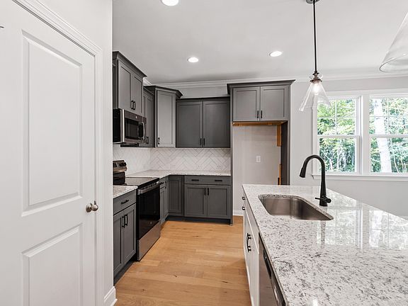 Custom Built by Ken Harvey Homes! Wide Plank Waterproof/Scratch Resistent LVP Flooring Thru Main Living! Kitchen: Cstm ''Pewter'' Painted Cabinets w/Cove Crown Trim, ''Ornamental White'' Granite Countertops, 4x16 ''Ice Gloss'' Herringbone Laid Tile Backsplash, Dbl Trash Cabinet, Lazy Susan Corner, Large''Frost'' Painted Island w/Single Bowl SS Sink w/Pull Out Faucet & Pendant Lights, Recessed Lights, Pantry & Stainless Appls! Main Level Primary: Trey Ceiling w/Crown Molding, Custom Trim Accent Wall & Ceiling Fan! Primary Bath: 12x24 White Matte Tile Floor, ''Frost'' Painted Dual Vanity w/''Calico White'' Quartz Top, 17x17 White Matte Tile to Ceiling Surround Shower w/Niche & Bench! Family Room: Black Slate Surround Fireplace & Ceiling Fan! Mudroom w/Bench & Drop Zone off Garage! Slider to Covered Porch w/Ceiling Fan!