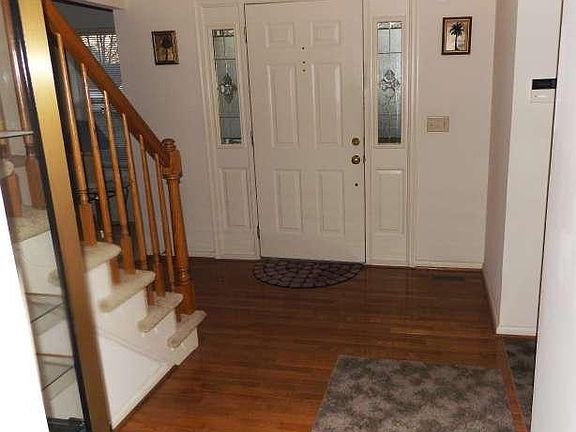 Welcome to this beautiful, spacious 4 bedroom Colonial in desirable Prescott Farms. Situated on a cul-de-sac street, large yard backing to woods, yet convenient to everything, makes this the perfect location! First floor includes 2 story foyer with hardwood floor, living room with new carpeting, Dining room with new carpeting, nice size kitchen with center island, breakfast area and pantry, family room with gas FP & sliding doors open to a huge Trex deck w/ ceiling fan overlooking the lovely grounds and woods, powder room, laundry room, coat closet and entrance to 2 car garage. Second floor has Master Bedroom w/ 2 walk in closets, ceiling fan, & recessed lighting, master bath w/ separate tub and shower & double sink. Three more spacious bedrooms all with ceiling fans and hall bath complete the 2nd floor. Handsomely finished, walk out, neutral basement with ceramic tile floor and gas FP and storage room. With its excellent condition, neutral decor, generously sized rooms, and wonderful location you will not be disappointed!