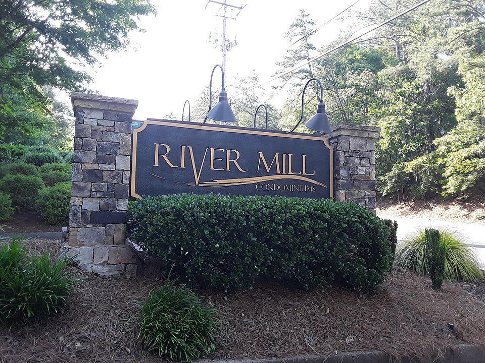 Historic Roswell FHA Approved Condo! Located in the gated community of River Mill, this 2nd floor condo has 2 primary bedrooms w/ walk- in closets & full baths. Open living area w/ built-in bookshelves, fireplace, wood-like floors & an enclosed sun-room. HVAC system is just 3 years old. River Mill offers swimming, tennis & grilling areas. Close to GA 400, Sandy Springs, E. Cobb, & only a 1/2 mile from Chattahoochee River Park! This affordable condo is located in Atlanta's HOTTEST suburb! Perfect for the savvy investor or a buyer looking to make some personal upgrades!