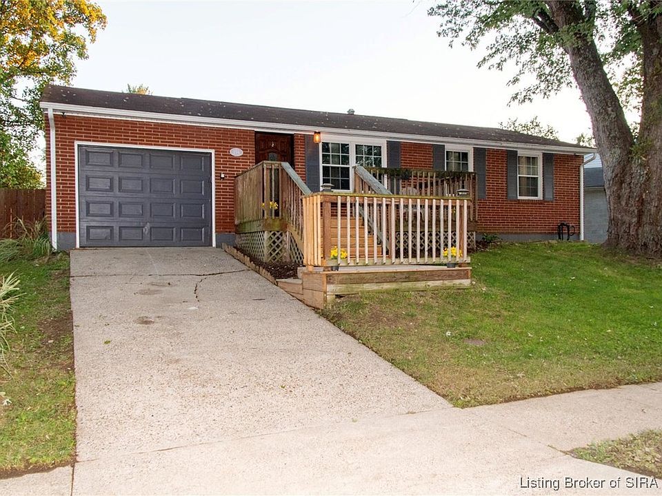 Welcome home to this Jeffersonville gem! Built in 1966, this well-constructed home offers two bedrooms on the main floor with the third possible bedroom (no egress) in the finished basement. Many walls have been freshly painted and some updated flooring will give you that move in ready feel. The finished basement also provides extra living space with its large family room and additional flex space. Outside the fully fenced backyard with a 16?x20 a storage shed, and covered back patio provide plenty of room for outdoor enjoyment. The attached single-car garage adds everyday convenience. Nestled in an established neighborhood this home combines peace and privacy with no HOA and easy access to I-265 and River Ridge Industrial Park. If you're looking for a home with good bones, move in ready, and a location that makes commuting a breeze, this is it! Sq ft & rm sz approx.