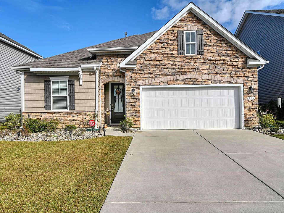 Welcome to 216 Rolling Woods Ct. this ranch style home located in the highly desired community of Hidden Brooke in the heart of Little River. This 2019 build offers brick frontage with vinyl siding, 3 bedrooms, 2 bathrooms, and a screened in back patio for your everyday relaxing needs. As you enter the home you are welcomed by LVP flooring, tile in the laundry room and bathrooms, and carpet in the bedroom areas. You have a full laundry room with cabinets leading off of the spacious 2 car garage. The kitchen welcomes a large island area for your everyday cooking needs, tons of cabinet space, granite countertops, stainless steal appliances, natural gas range stove, subway tile backsplash and a full size kitchenette area leading off the kitchen. This enlarged floor plan is different than any other in the community having an extended living room space. The master bedroom is located off the back of the home with a walk in closet, master bathroom with double vanities, and walk in shower. Natural Gas community with gas heat, instant tankless gas water heater and gas cooktop. Hidden Brooke is a beautiful community with a 1/2 mile tree lined drive from the entrance to our homes. Minutes away from Highway 31 which provides quick and easy access to all of the Grand Strand's offerings: dining, golf, entertainment, shopping and golf!Tranquil setting just a short drive to the beach. Built in 2019! Clubhouse with large pool, gym, and trash included in reasonable HOA! Vinyl privacy or black cast iron fencing allowed in community.
