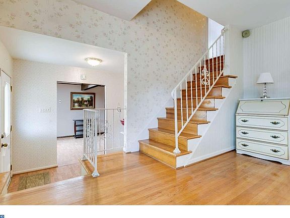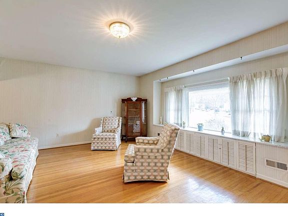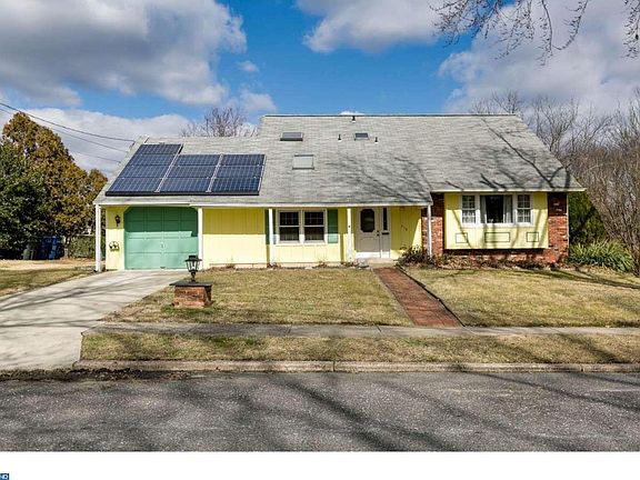 Spacious three bedroom split level with over sized one car attached garage situated on large lot adjacent to picturesque community park. Newer roof (with solar panels) approximately 3 years old, replacement windows throughout, newer concrete driveway, brick walkway to front door. Entry foyer has laminate flooring and double closet and leads to recently painted family room with laminate flooring, wood ceiling beam, skylight, Pella windows, lighted ceiling fan and two wall sconces. An elevated spacious formal living room features hardwood flooring, vinyl windows with storage beneath the marble window sill and wrought iron railings overlooking the dining room. Formal dining room features bay window with marble sill and includes the crystal chandelier. Eat-in kitchen has been updated with ample wood cabinetry, gas range, dishwasher, garbage disposal, ceramic-tiled floor, ceiling fan and wood Pella windows and sliding glass door leading to deck. Convenient powder room features a skylight; the laundry room has access to rear yard and includes a laundry tub, freezer, Maytag dryer and Whirlpool washer, gas heater and central air conditioner (replaced in May 2010). Upper level offers three spacious bedrooms with hardwood flooring and ceiling fans; updated full bathroom has linen closet, skylight, neutral ceramic-tiled tub surround and flooring, and upgraded vanity. Skylight in master bedroom walk-in closet with built-in shelving. Plenty of storage in the floored attic with cedar closet. The community of "Green Ridge" is conveniently located near Patco Speed Line and Voorhees Town Center. This is an estate sale in very good condition being sold in its "as is" condition.